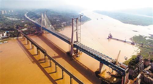 5月11日,江津区珞璜镇,空中俯瞰新白沙沱长江特大桥。该桥是新建渝黔铁路的控制性工程,也是渝黔客货车线引入重庆枢纽的重要过江通道,同时也是远期预留渝湘客车线的过江通道。大桥全长5.3公里,连接江津区珞璜镇和大渡口区跳蹬镇。目前,主桥进入收尾施工阶段,预计大桥将于8月竣工。
